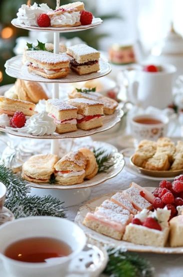 Three tiered dessert: White cranberry drops - mini pecan pies - cheesecake